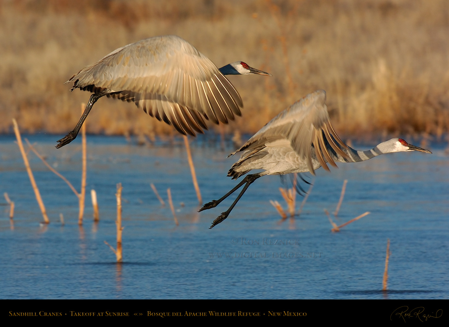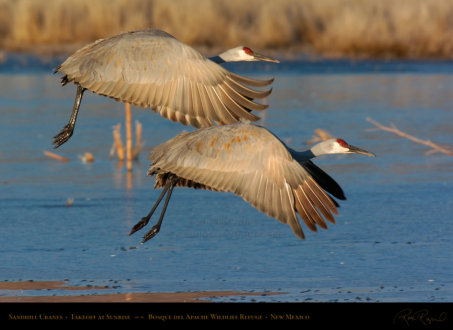 A series of sunrise takeoff portraits taken on a cold morning in December at Bosque del Apache National Wildlife Refuge.