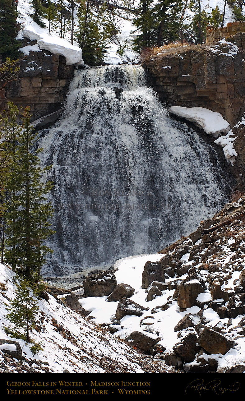 Gibbon Falls at Yellowstone National Park in late April. Spring comes late to Wyoming at an 8000 foot altitude.