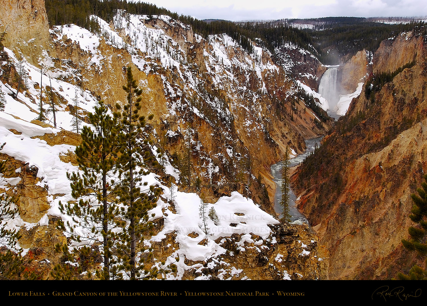 The Grand Canyon of the Yellowstone and the Lower Falls, from Artist Point in late winter.