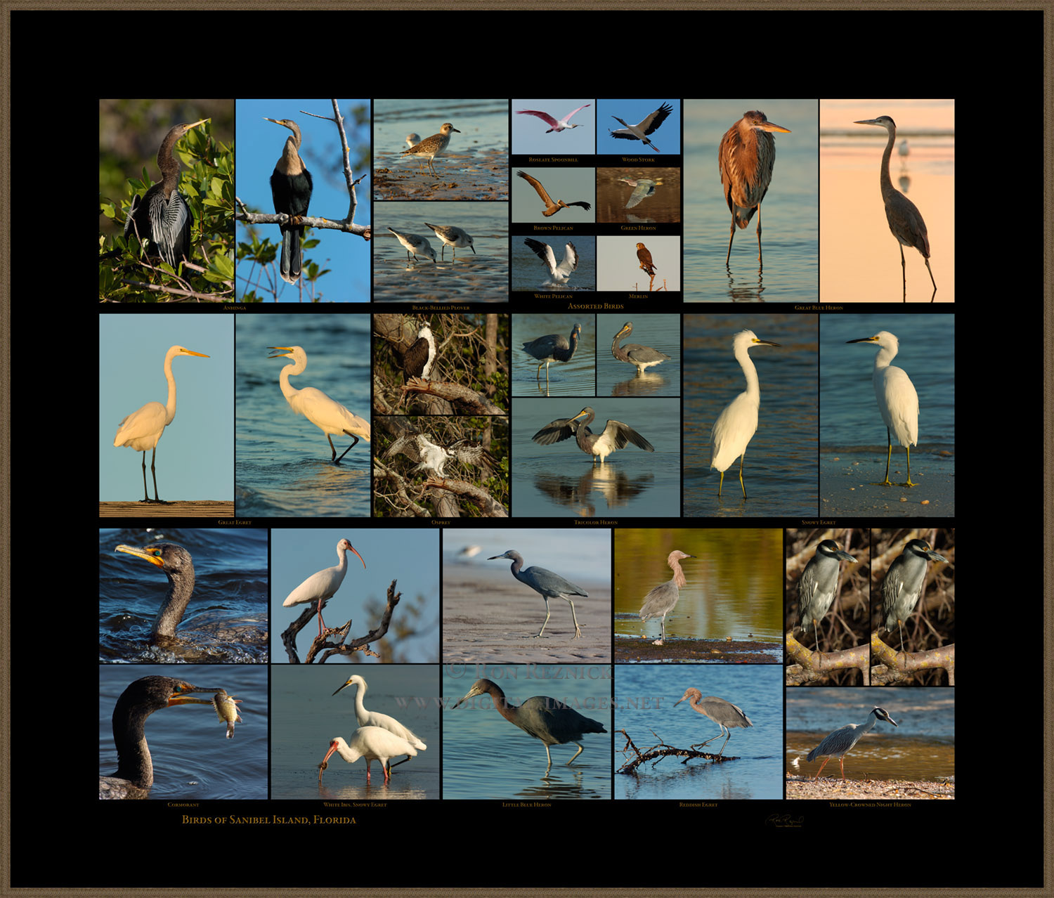Standard Composites are available Framed as well. Below is an example of Birds of Sanibel with a digital frame.