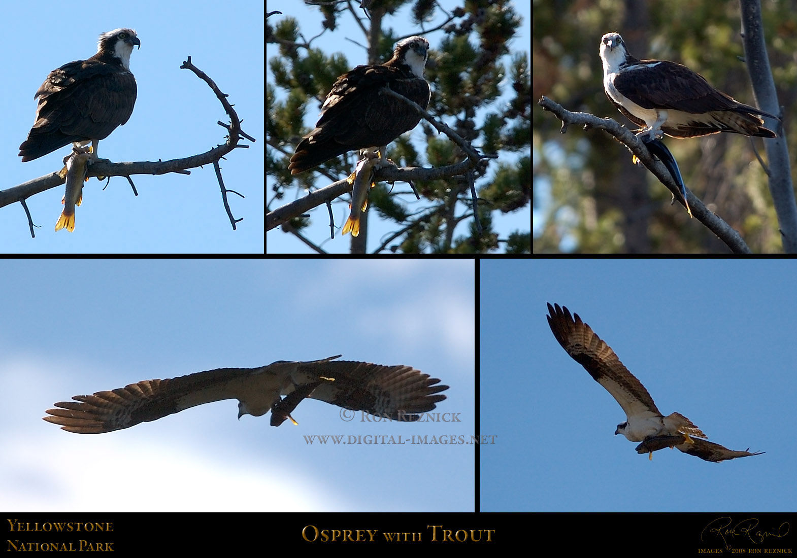 with two toes in front and two in the rear. Ospreys also tend to turn the fish head-forward to reduce drag (see image above, or click for a composite image of an Osprey carrying a trout).