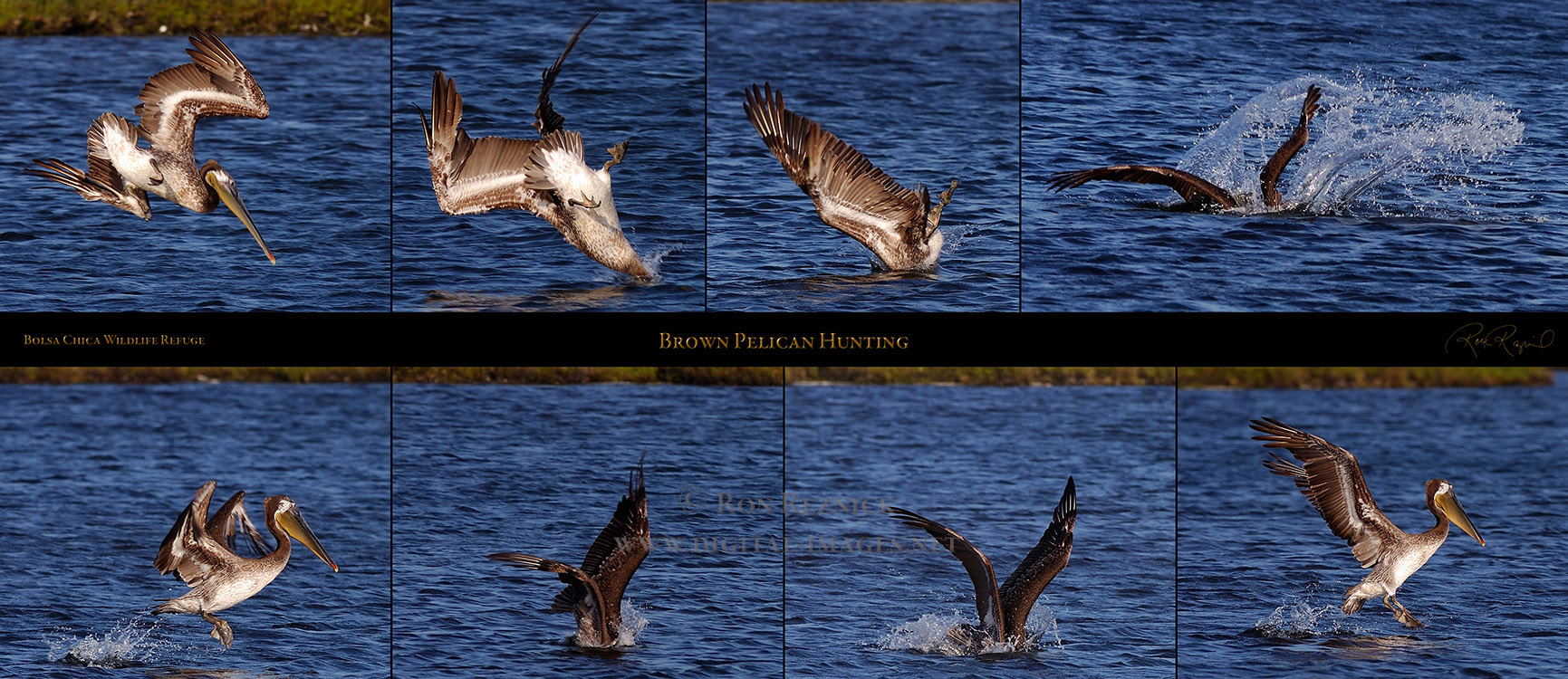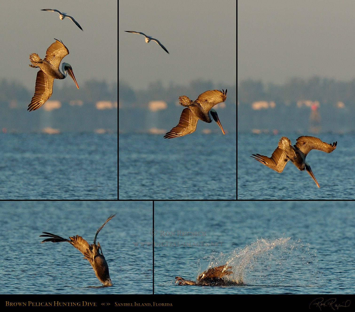 A composite of crops from a hunting sequence taken at sunrise from Sanibel Island, Florida.