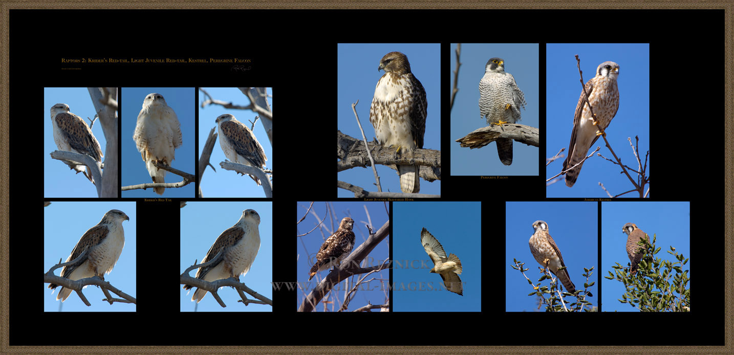Raptors 2: Kriders Red-tail, Light Juvenile Red-tail, Kestrel, Peregrine 1434 x 694 preview (SXXL version is 9970 x 4826)