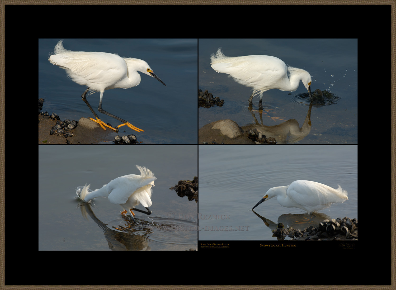 Snowy Egret Hunting Sequence SXL 1410 x 974 preview (SXL version is 6473 x 4473) — the SXL version uses 1350 x 1050 images —